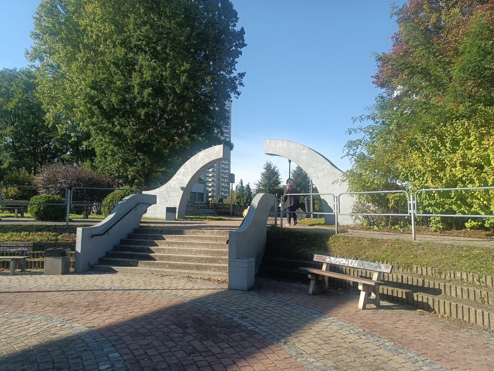 Przy ul. Akademickiej i Bulwarach Rawy na działkach 16/19 - Miasta Katowice oraz 16/17 - Skarbu Państwa znajduje się łuk, łuk triumfu wandalizmów w tkance miejskiej. Proszę o zamalowanie tych bazgrołów lub usunięcie tych betonowych elementów, które nie robią nic innego jak tylko szpecą okolicę.