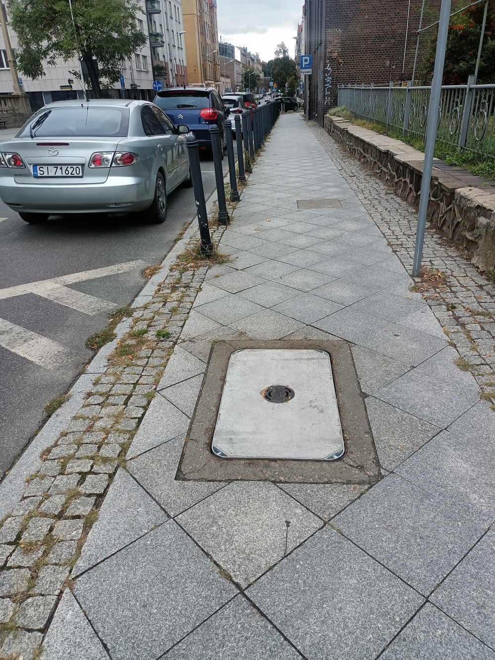 Prosiłbym o zwrócenie się do właściciela studni teletechnicznej o wymianę lub załatanie dziurawego włazu tejże studni, znajdującej się w chodniku ul. Jagiellońskiej, na wysokości wejścia do budynku Jagiellońska 28. W dziurze tej utknie np. obcas damskiego buta.