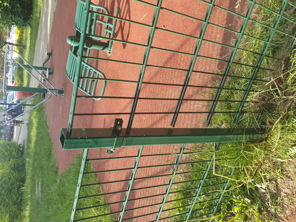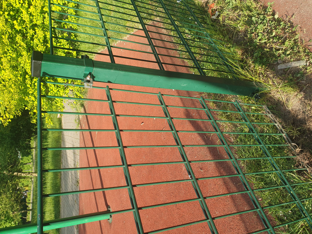 Uszkodzone ogrodzenie placu zabaw obok Lidla na Bieszczadzkie.