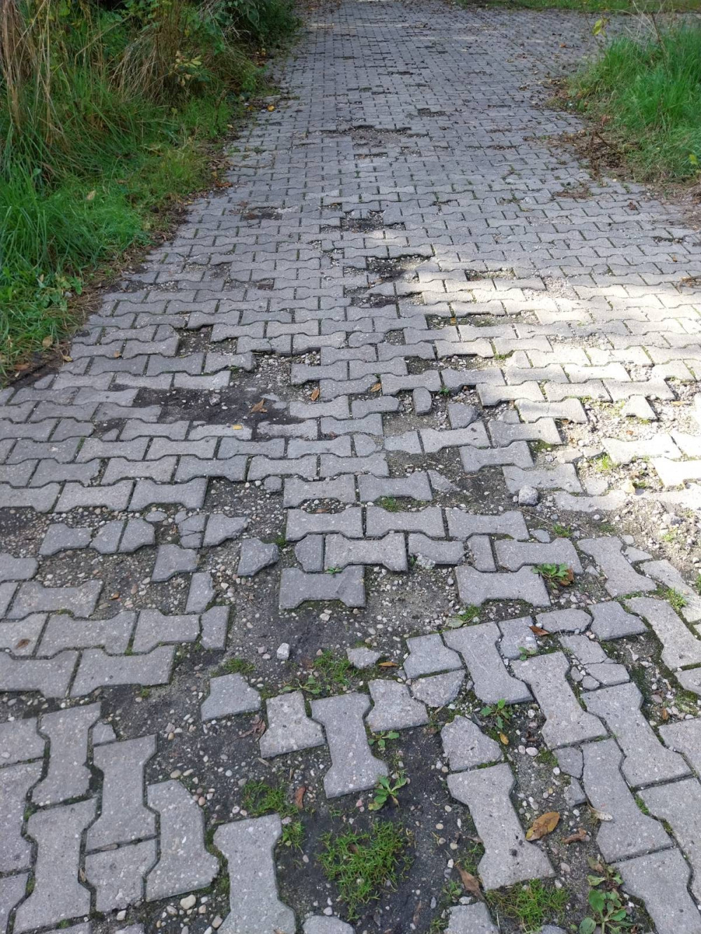 Na wejściu do tunelu oraz zjeździe dla wózków są ogromne wykruszania kostki brukowej oraz dziury i nierówności, spacerówką z dzieckiem nie da się bezpiecznie przejechać, proszę o sprawne naprawienie