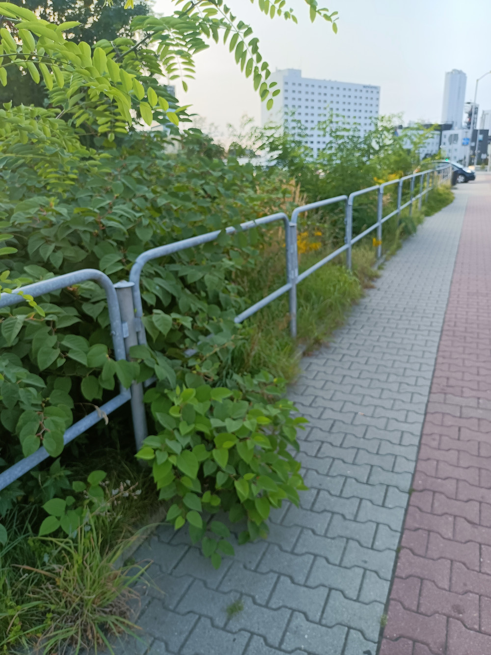 Powtórnie prosiłbym o usunięcie rdestowca nachodzącego na chodnik ul. Dudy-Gracza przy budynku Dudy-Gracza 12. Był zgłaszany w ramach alertu https://naprawmyto.pl/139100 i przy ulicy Pańki go usunięto - tutaj nie, więc pozwalam sobie ponowić zgłoszenie.