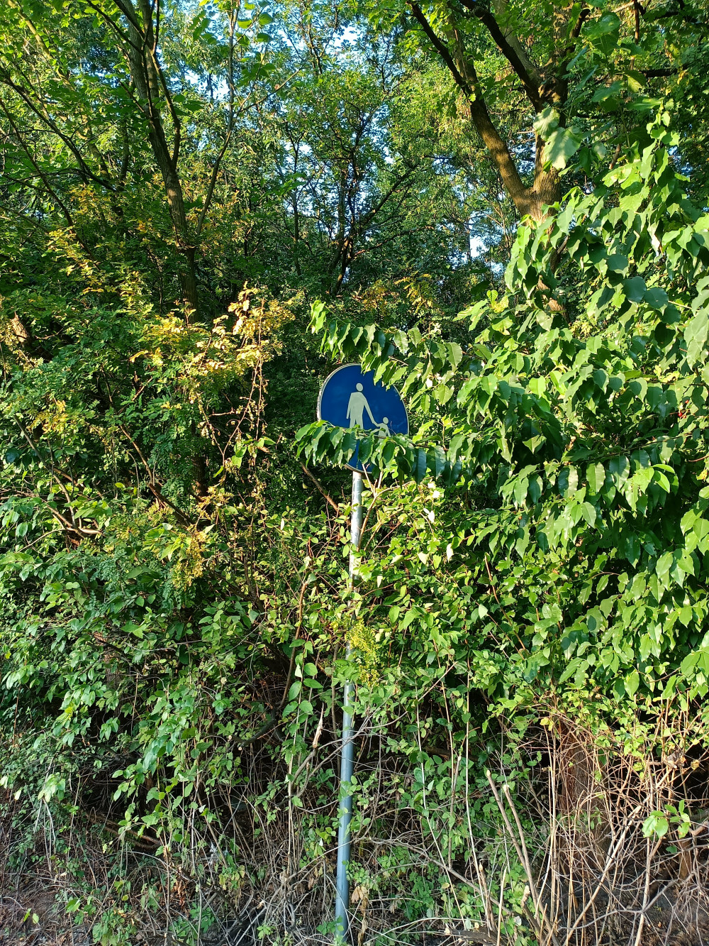 Proszę o przestawienie znaku znajdującego się w miejscu zaznaczonym pinezką, w obrębie obszaru zielonego w zarządzie ZZM, w widoczne miejsce - obecnie zasłania go zieleń.