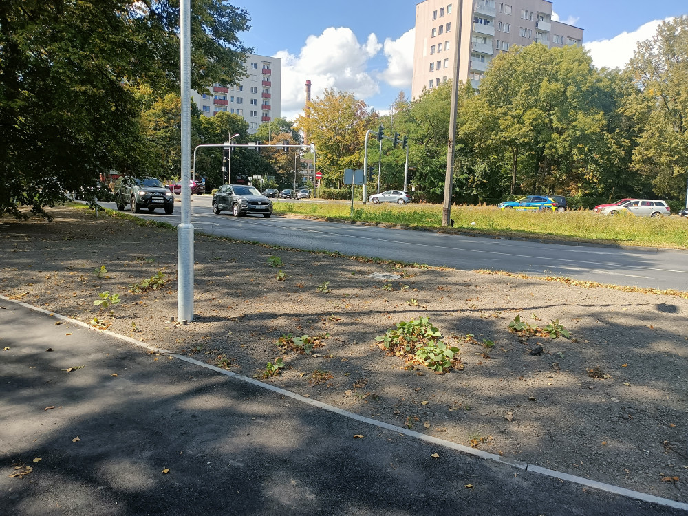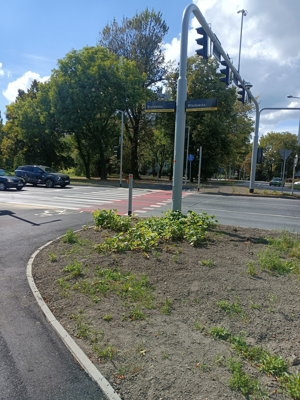 Prosiłbym o usunięcie siewek rdestowca wyrastających z niedawno przekopanej w ramach inwestycji pieszo-rowerowej przy skrzyżowaniu ul. Parkowej i Brynowskiej.