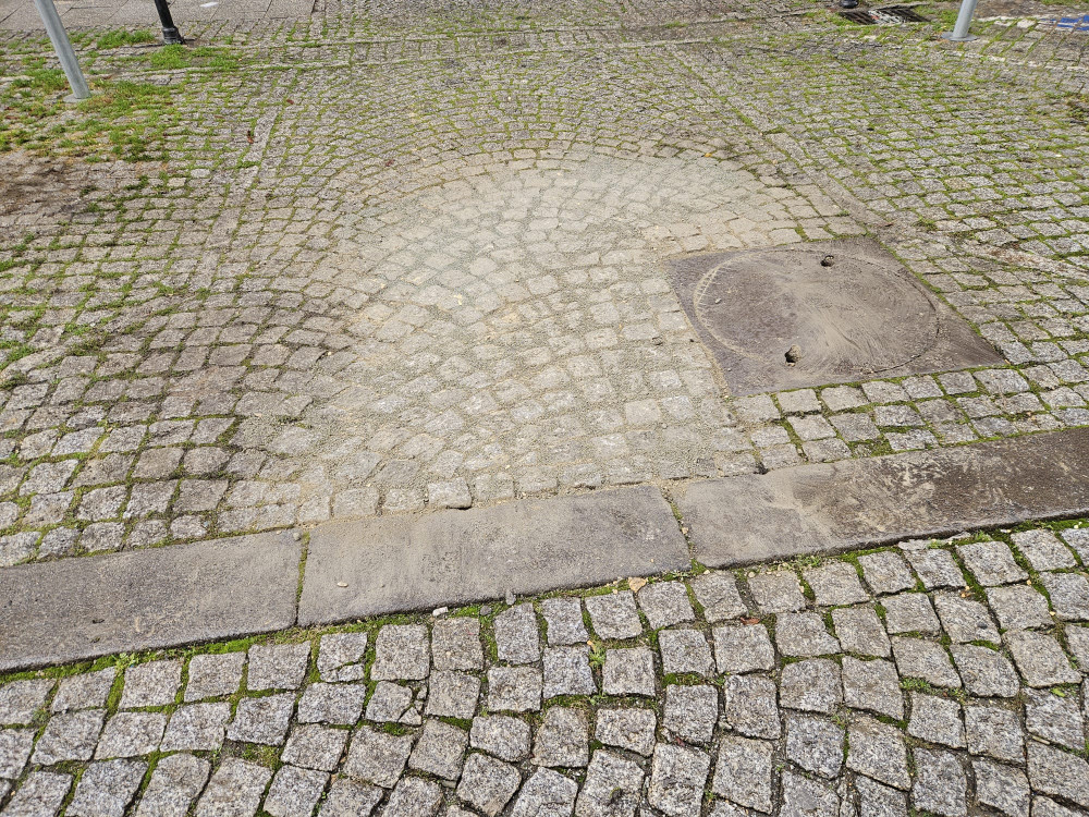 Proszę o pilną naprawę zapadniętej nawierzchni zjazdu przy studni naprzeciwko budynku Chopina 1.