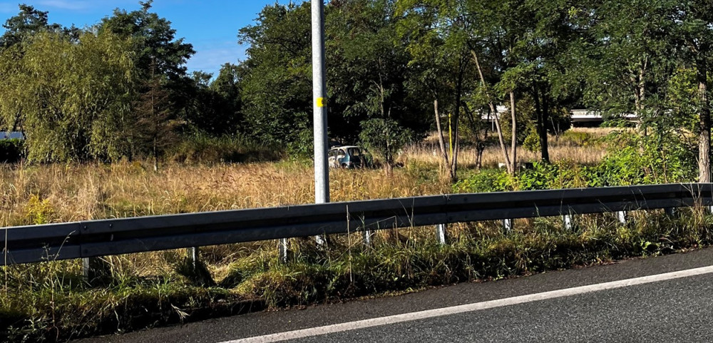 Proszę o usunięcie wraku samochodu z pobocza. Wrak częściowo już nadpalony...