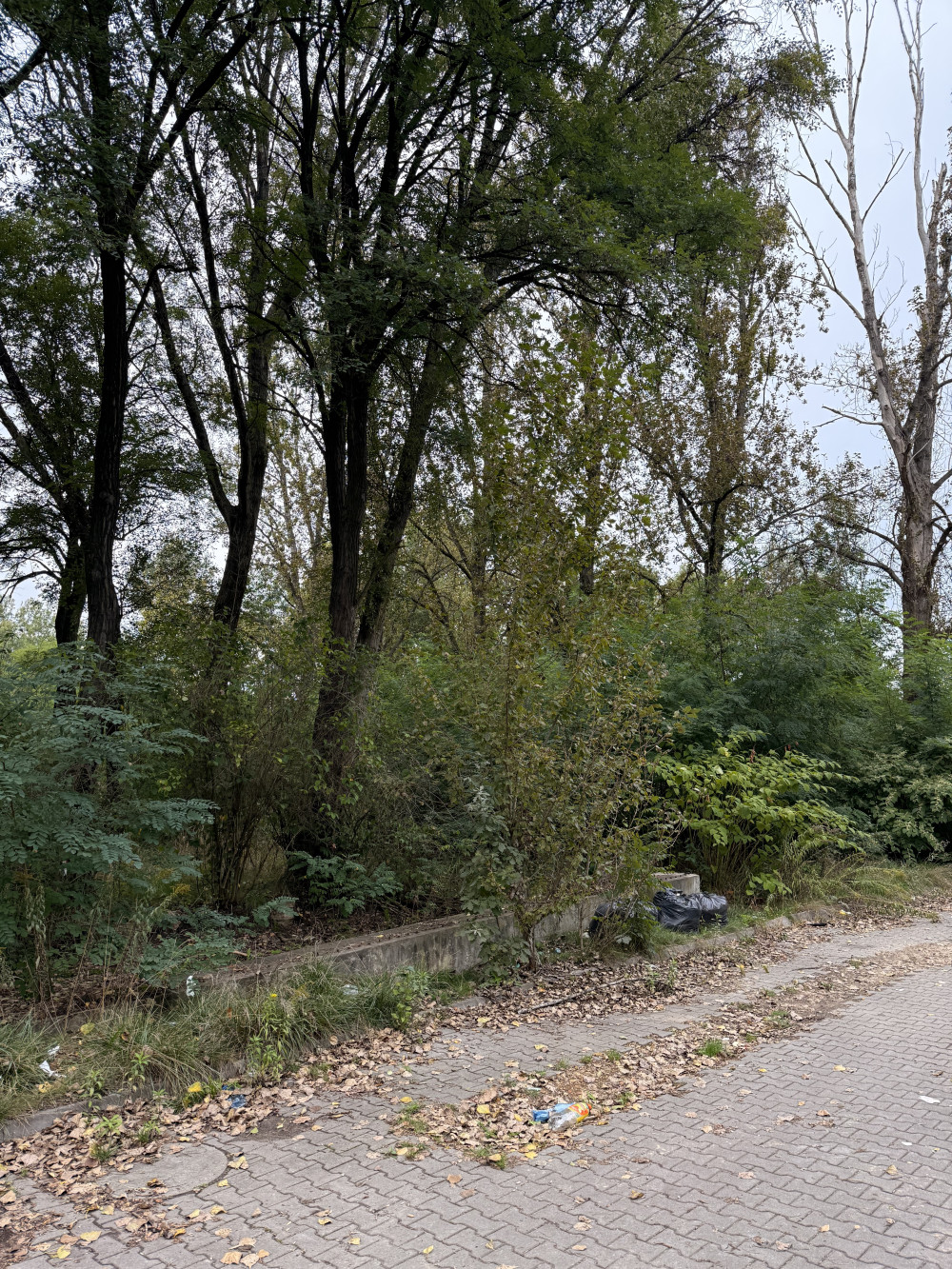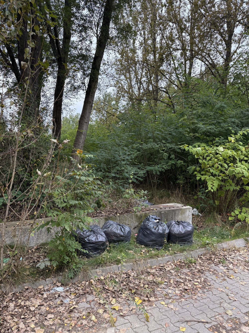Porzucone worki ze śmieciami przy parkingu przy starej cukierni (zburzonej)