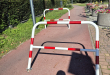 Naderwane mocowanie słupka na ścieżce rowerowej.