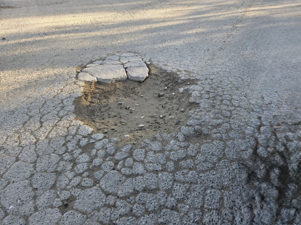 Wielka głęboka dziura w drodze ul. Wislna