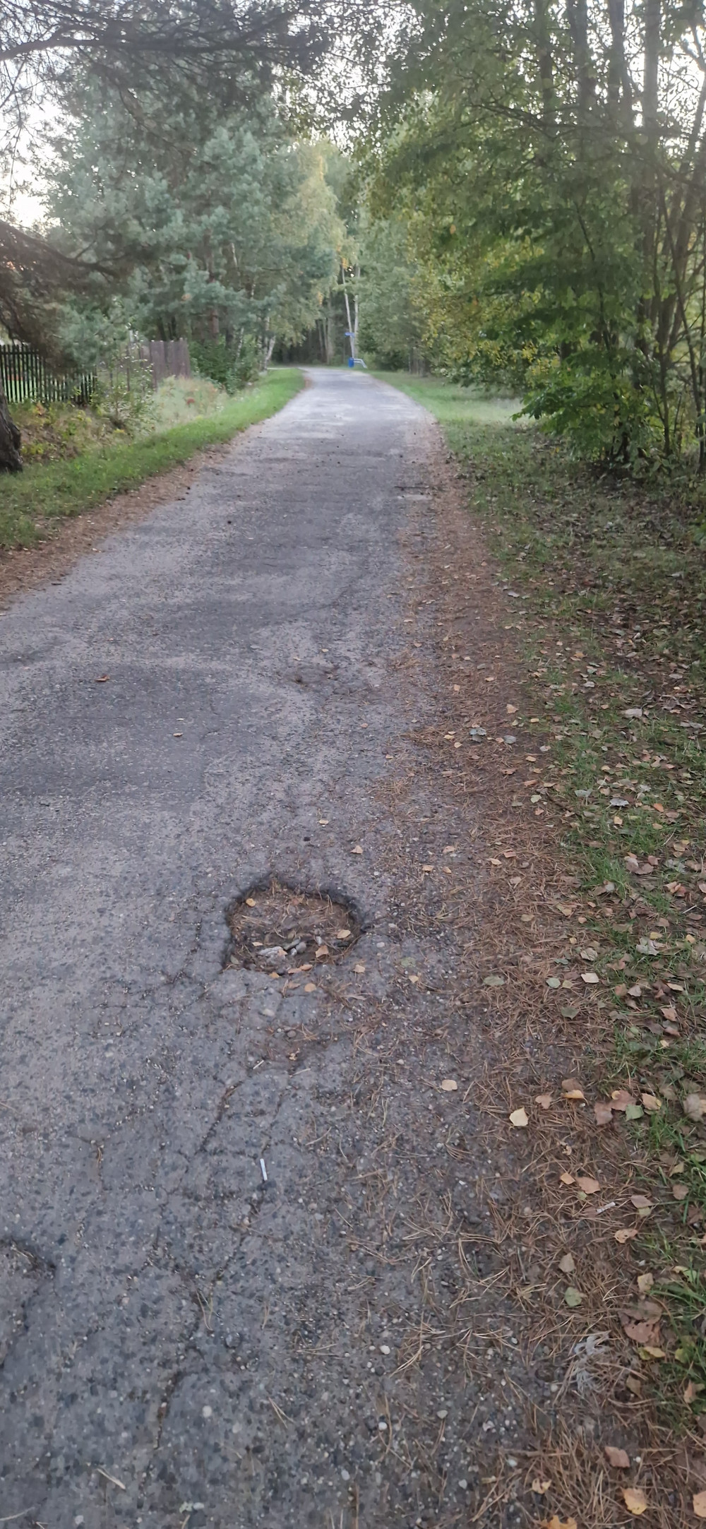 30.09.2025 r. Informacja przekazana przez Wydział Inwestycji i Remontów: Naprawa zostanie zlecona w ramach prowadzonych przez gminę remontów bieżących dróg. Przewidywany termin realizacji: 10.10.2025 r.