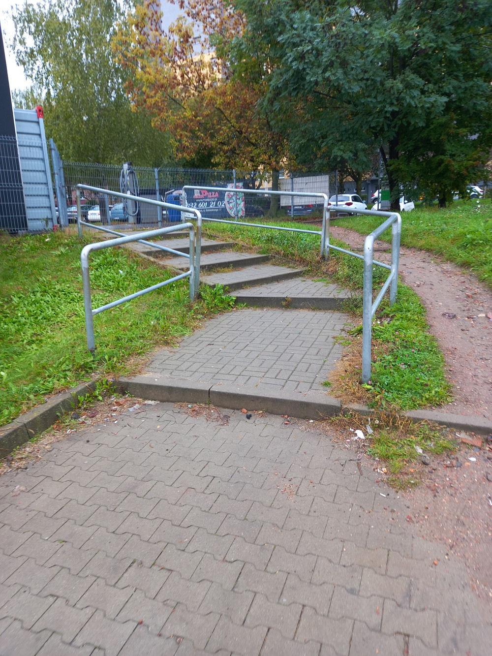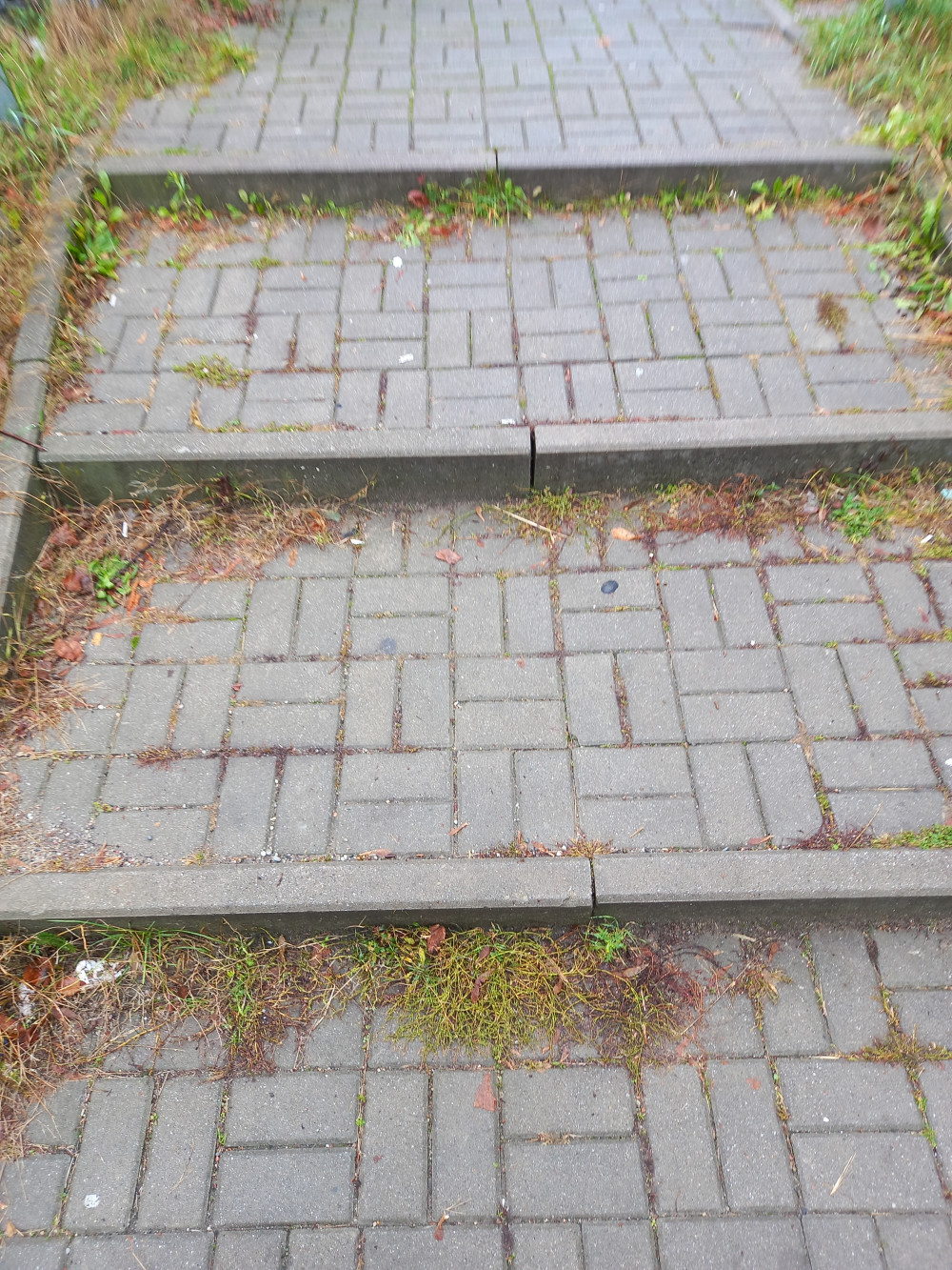 Proszę o odchwaszczenie chodnika i schodów prowadzących do Biedronki. Chwasty utrudniają korzystanie z nich.