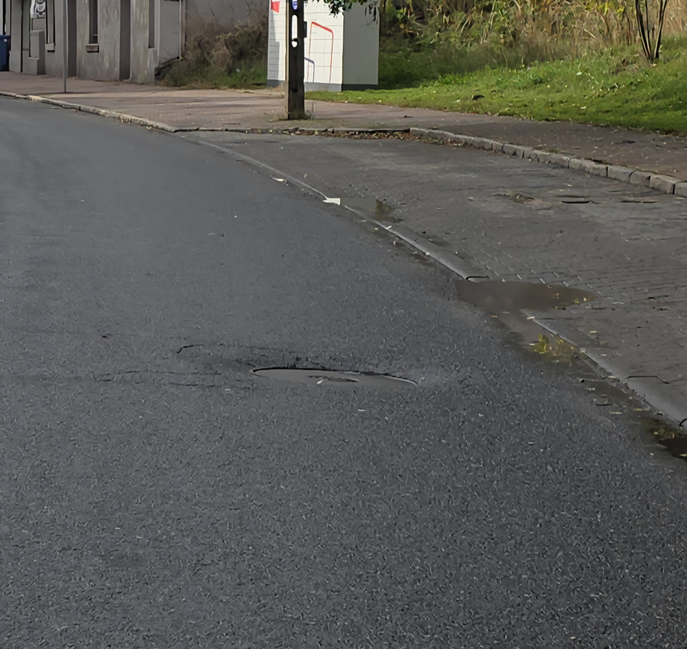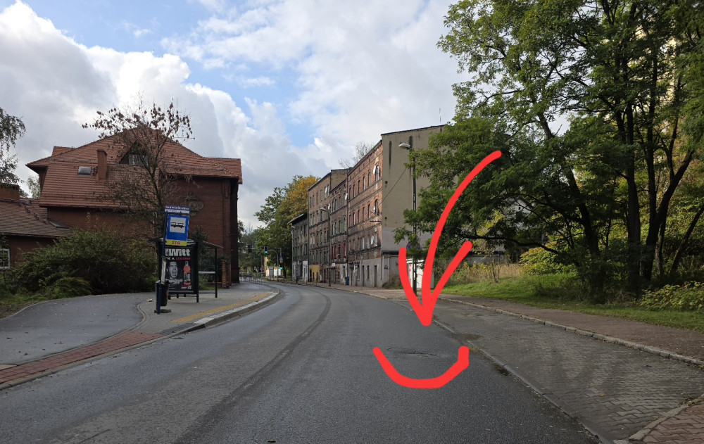 Poważnie uszkodzona zapadnięta mocno w jezdni studnia kanalizacyjna bardzo proszę o naprawę. Niestety za każdym razem trzeba w nią wpaść bo jest w osi jazdy.