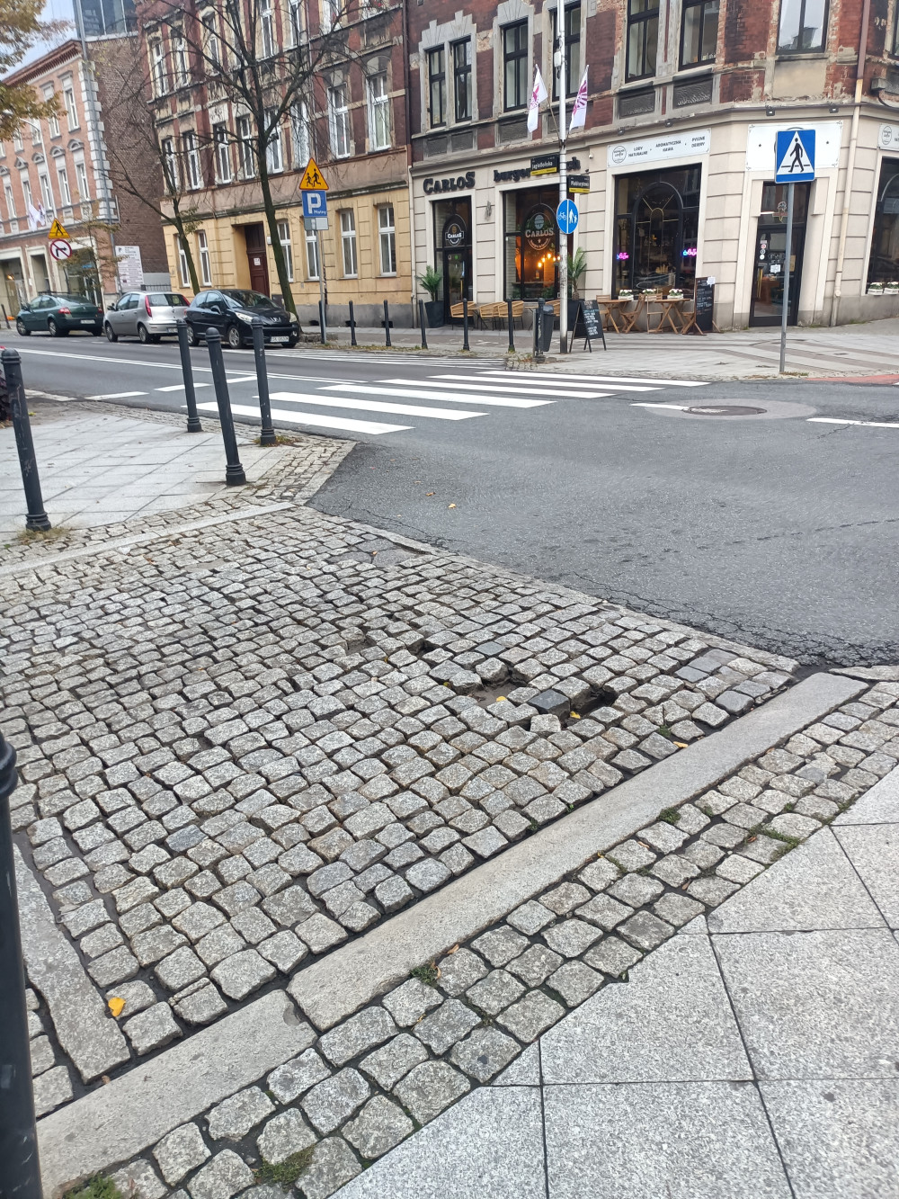 Prosiłbym MZUiM o uzupełnienie kostek łupanych granitowych w nawierzchni jezdni ul. Plebiscytowej przy skrzyżowaniu z ul. Jagiellońską oraz w chodniku w okolicy budynku Jagiellońska 14.
