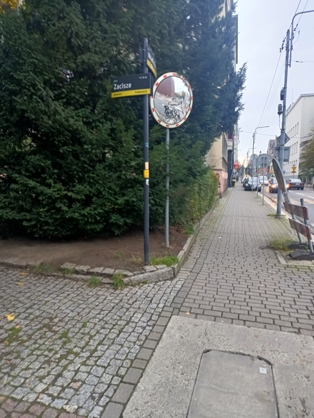 Prosiłbym Dział Zabezpieczenia Ruchu Drogowego MZUiM o usunięcie bazgrołów z tablicy SIM oraz lustra drogowego przy skrzyżowaniu ul. Wojewódzkiej z ul. Zacisze.