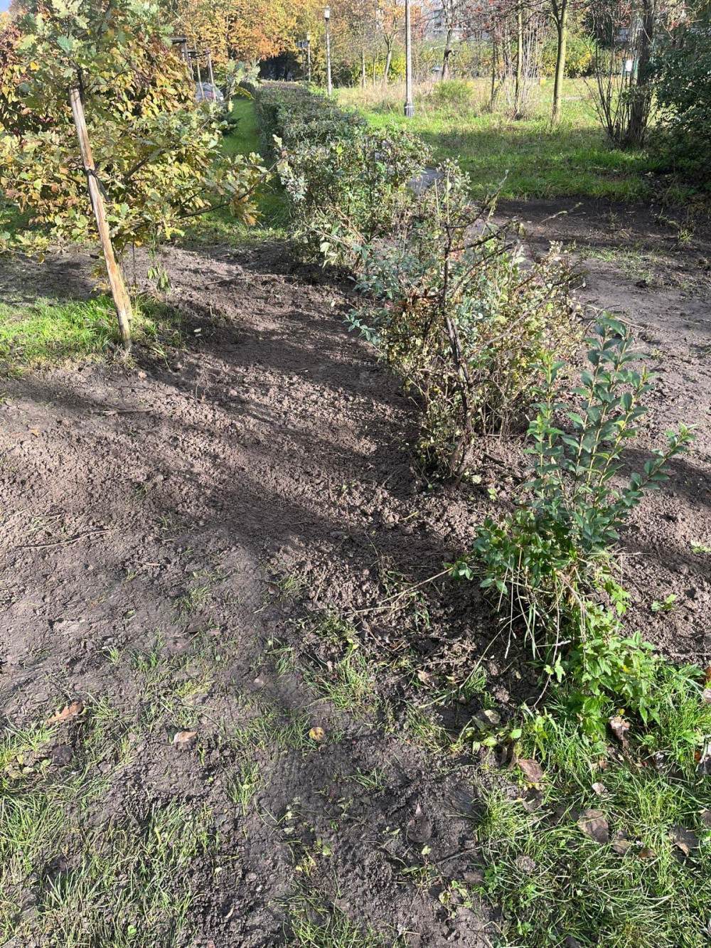 Teren zielony zniszczony po usuwaniu awarii przez Katowickie Wodociągi.
