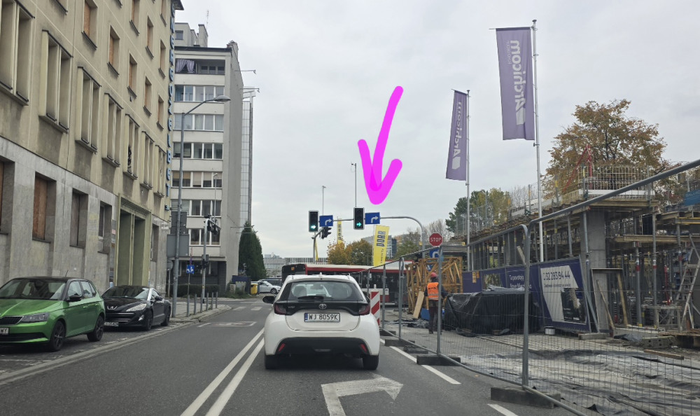 W związku z wyłączeniem prawego pasa jezdni proszę o zasłonięcie, bądź wyłączenie sygnalizatora nad prawym pasem jezdni. Według informacji urzędu miasta pasma być nieczynny do sierpnia 2026.
