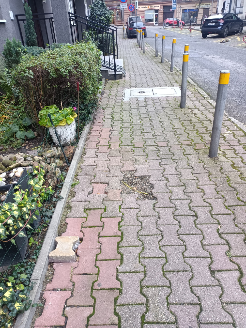 Prosiłbym o dokończenie naprawy chodnika przy budynku Szafranka 3, gdzie najwyraźniej kostka nadal się lekko zapada.