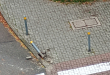 Wyrwany słupek ochronny przy przejściu dla pieszych, naprzeciwko wejścia do klatki Modrzewiowa 25