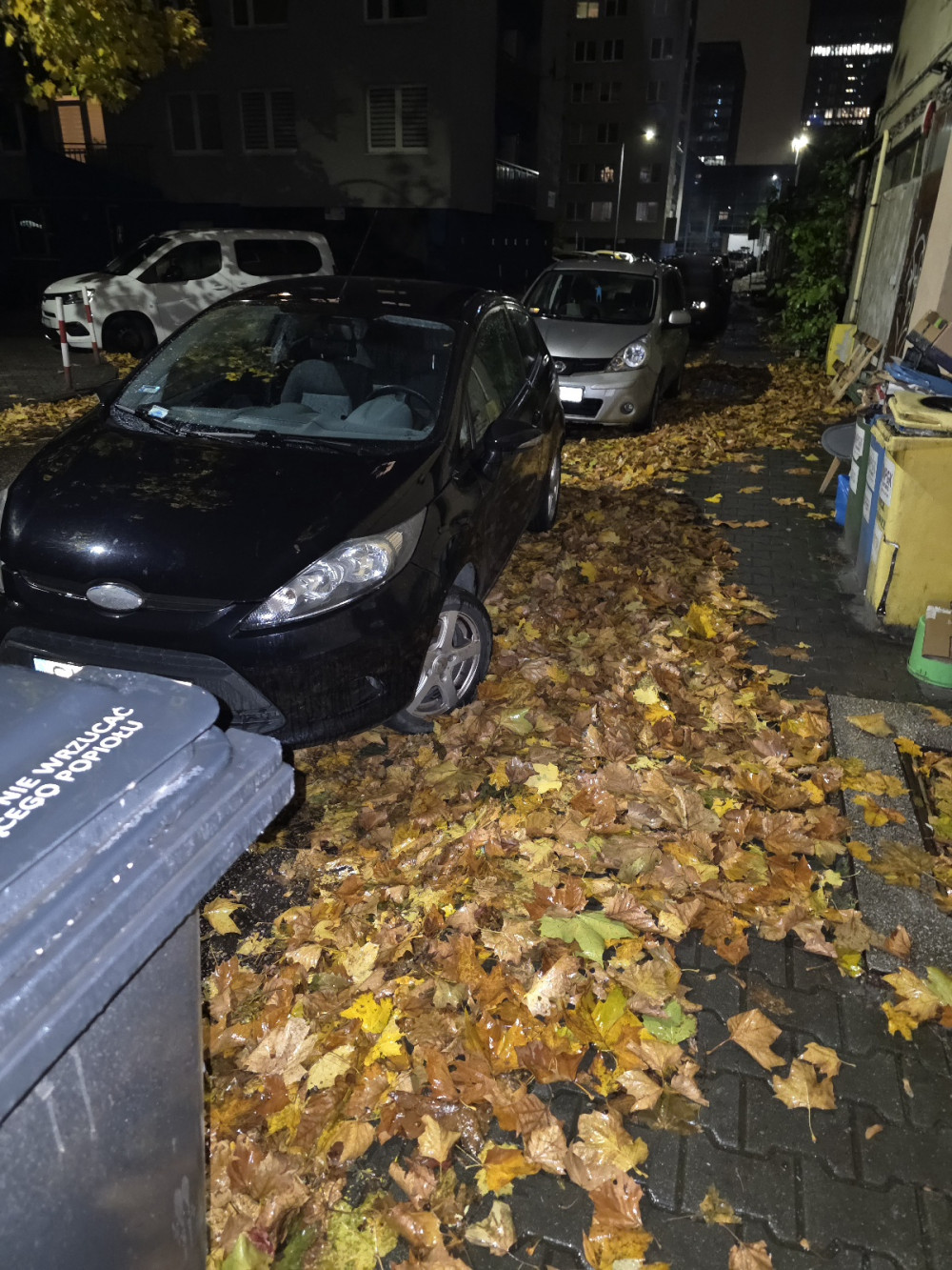 Bardzo proszę MPGK o odkopanie jezdni z ogromnej ilości nawianych liści, które zalegają na płatnych miejsc parkingowych na tyłach pawilonów Chorzowska/Grażyńskiego.