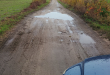 Duże dziury w drodze. Miejscowość Ługi, dojazd przez ulicę Długą w Mostach do domów, które zostały odcięte przez zamknięcie przejazdu kolejowego w Ługach. Działka drogi nr 47