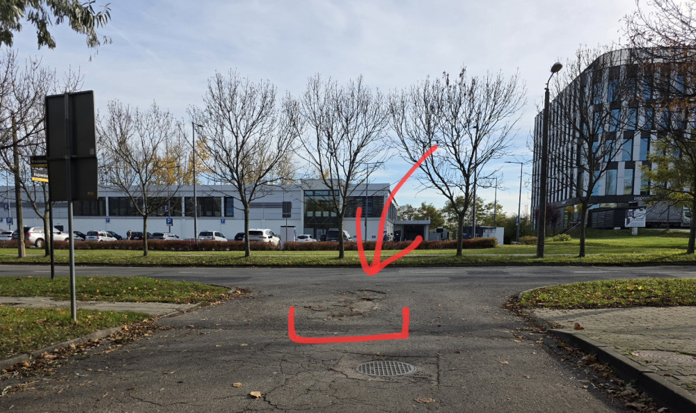 Skrzyżowanie Lubuska Wrocławska. Proszę o naprawę zdegradowanej nawierzchni we wskazanym miejscu.