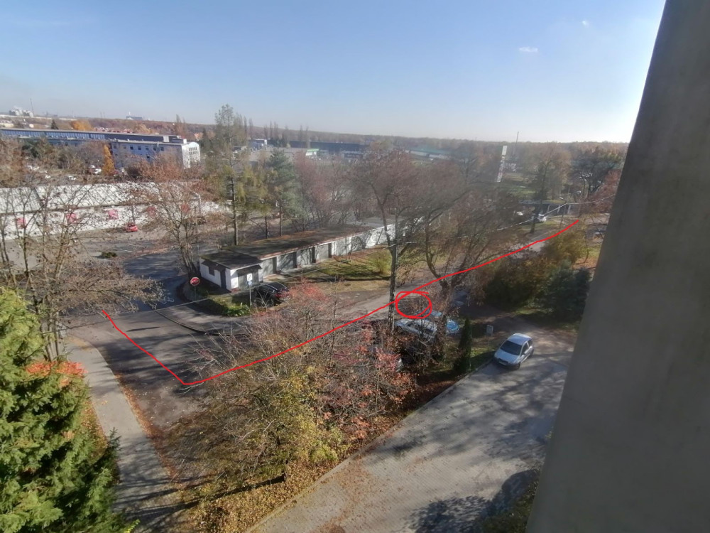 Wojska Polskiego 70 droga biegnąca między garażami, boiskiem, w stronę garaży i S1 proszę o przejazd brodwayem - niezgrabione liście zatkały studzienkę kanalizacyjną i w czasie deszczu dostęp do śmietnika jest tylko w kaloszach