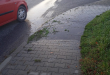 Zalany chodnik, brak możliwości przejścia na przystanek autobusowy.