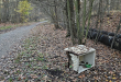 Śmieci porzucone na skraju lasu.