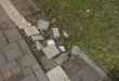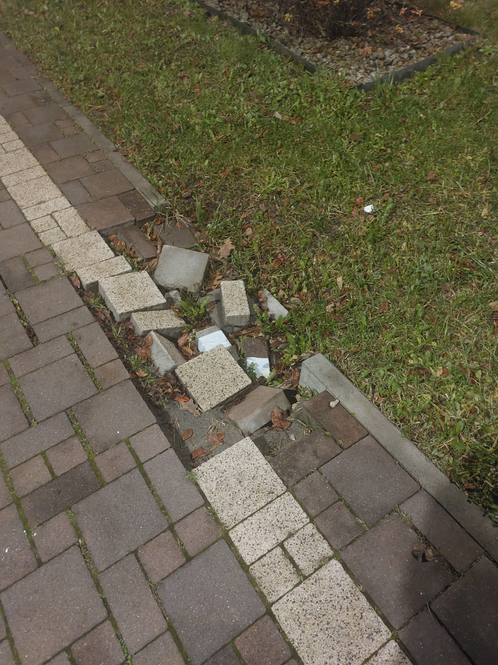 Zapadnięta część chodnika, robi się niebezpieczna dziura, ul Aleja Majakowskiego na wysokości gabinetu okulistycznego