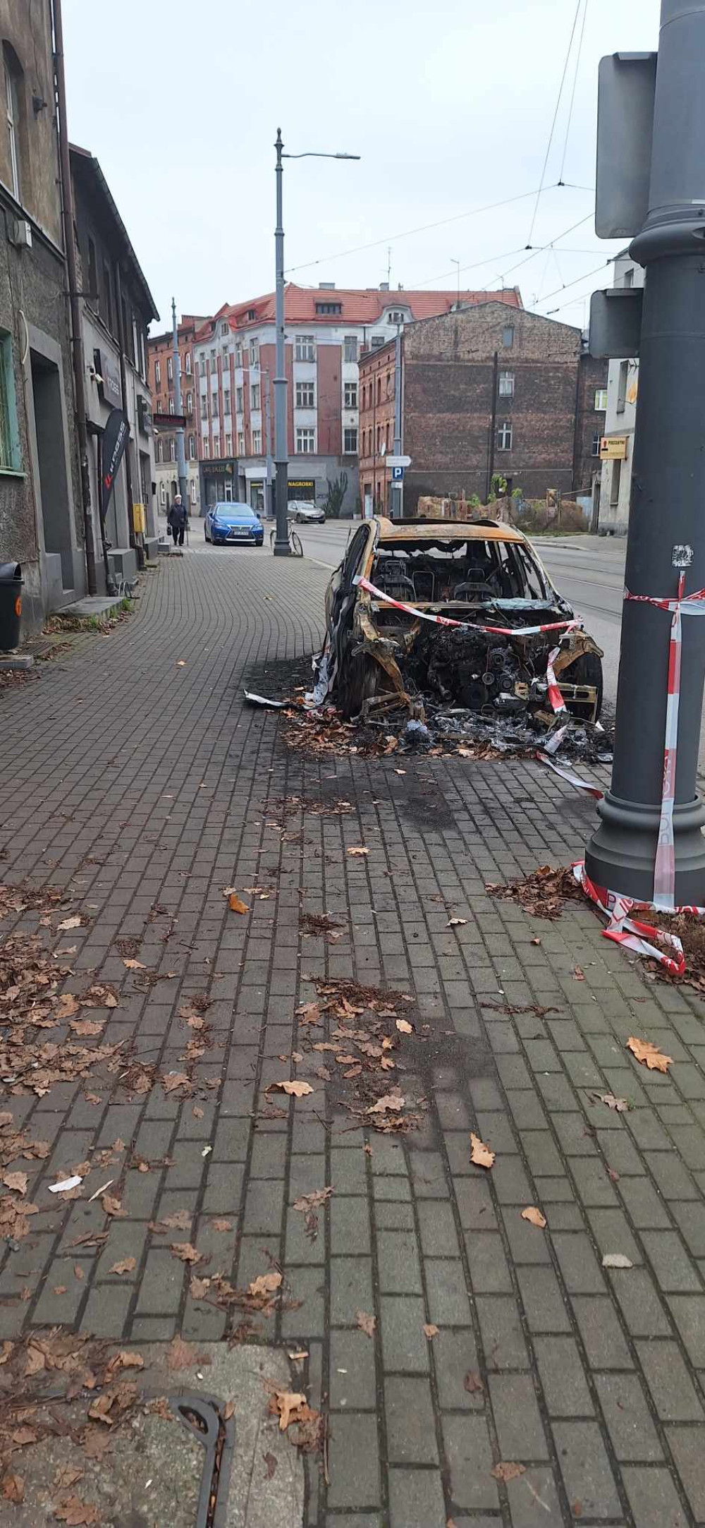 Ok. 2 tygodnie temu (7.11) przy ulicy Gliwickiej spłonął samochód. Wrak do dzisiaj stoi i owinięty taśmą policji