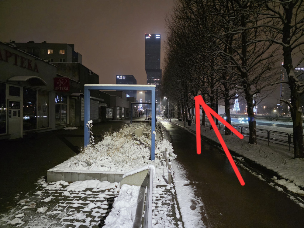 Przestały działać dwie oprawy LED na deptaku przy Chorzowskiej. Proszę o naprawę oświetlenia i po naprawie podnieść/zmienić kąt świecenia, by doświetlić bardzo szeroki chodnik nie tylko śvieżkę rowerową.