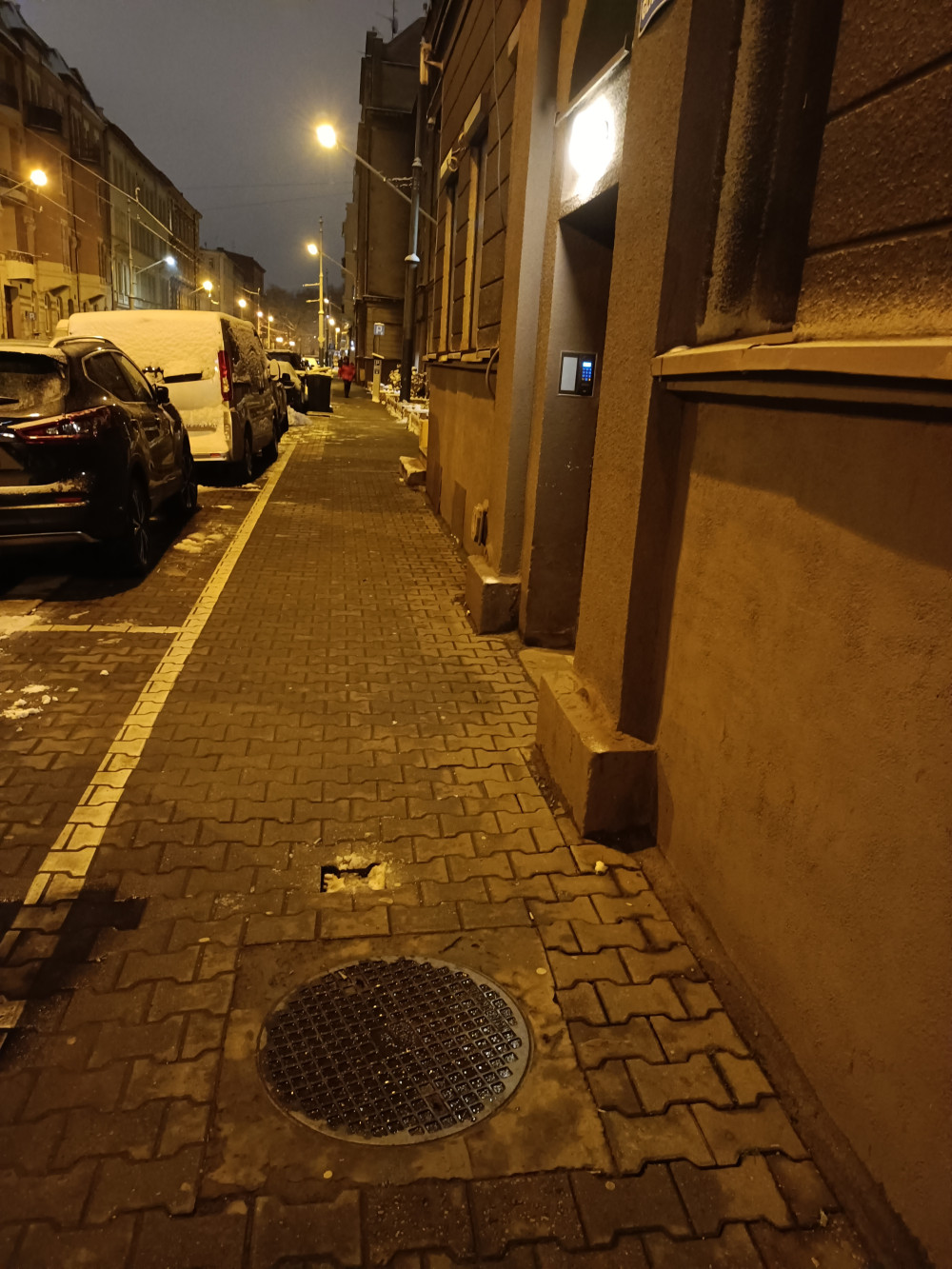 Proszę o naprawę zapadniętej kostki betonowej przy studni przy budynku Gliwicka 18.