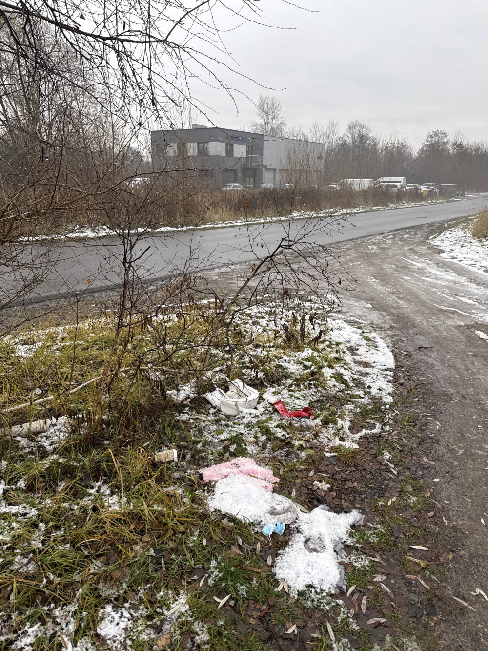 Ludzie zatrzymują się w zatoczce i wyrzucają śmieci