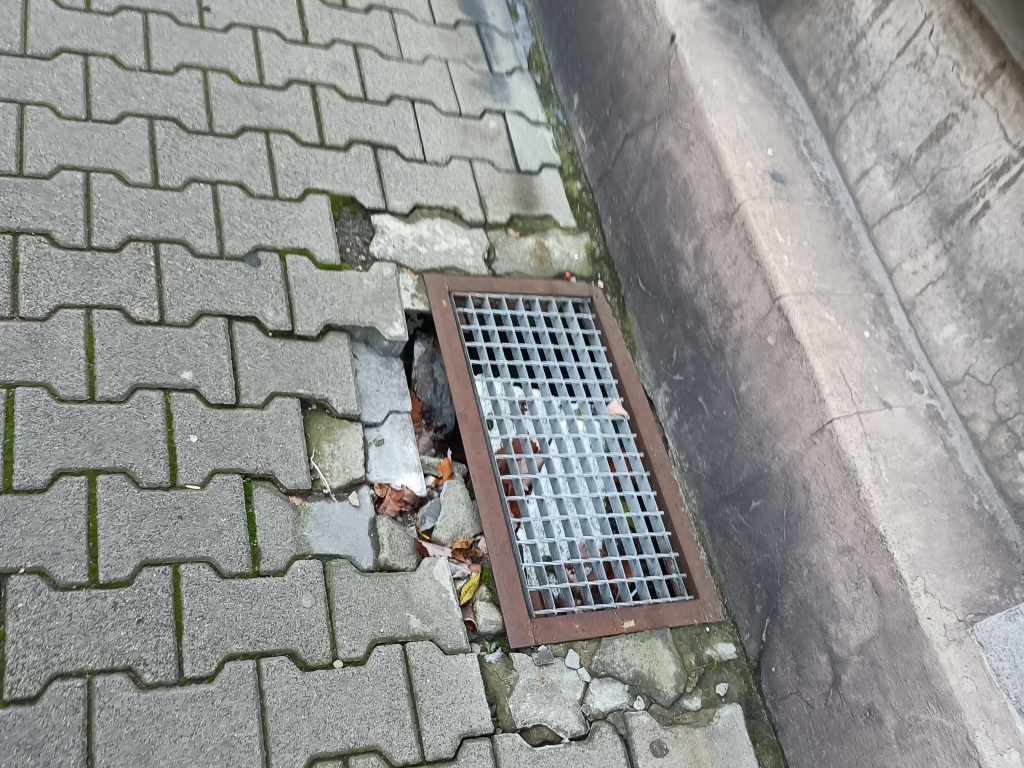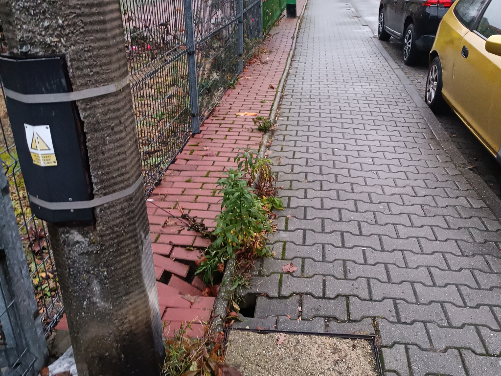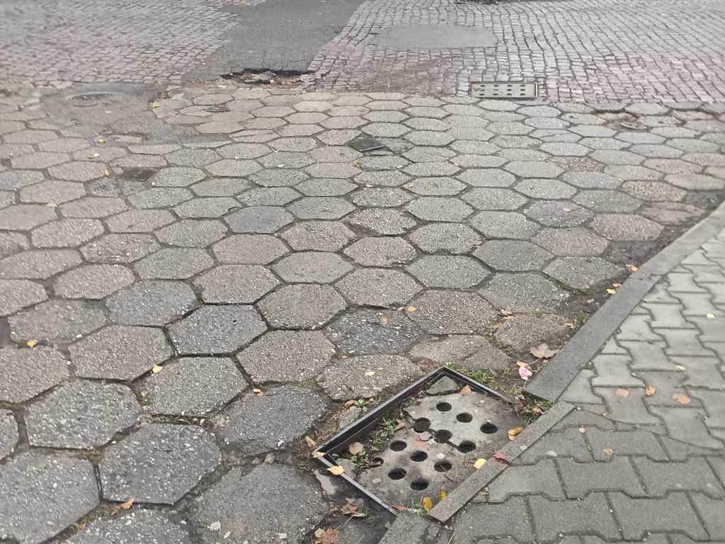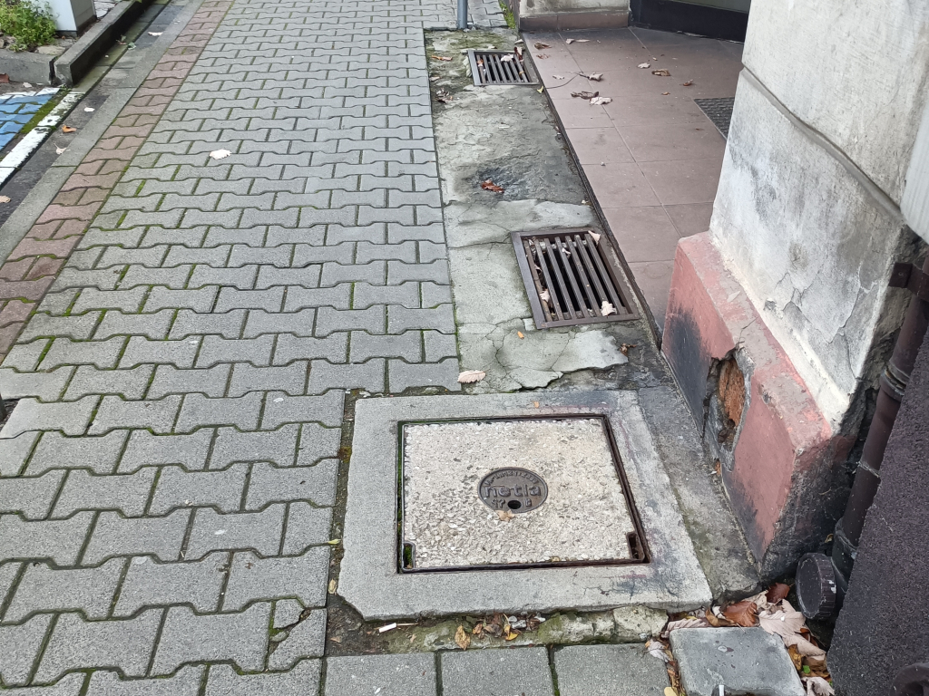 zatkana, uszkodzona studzienka uliczna