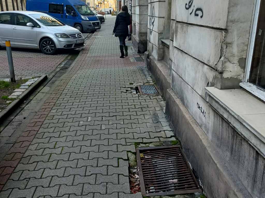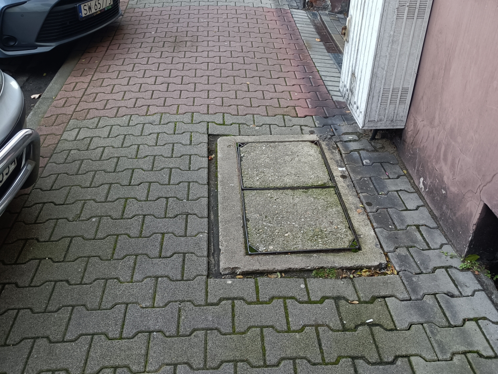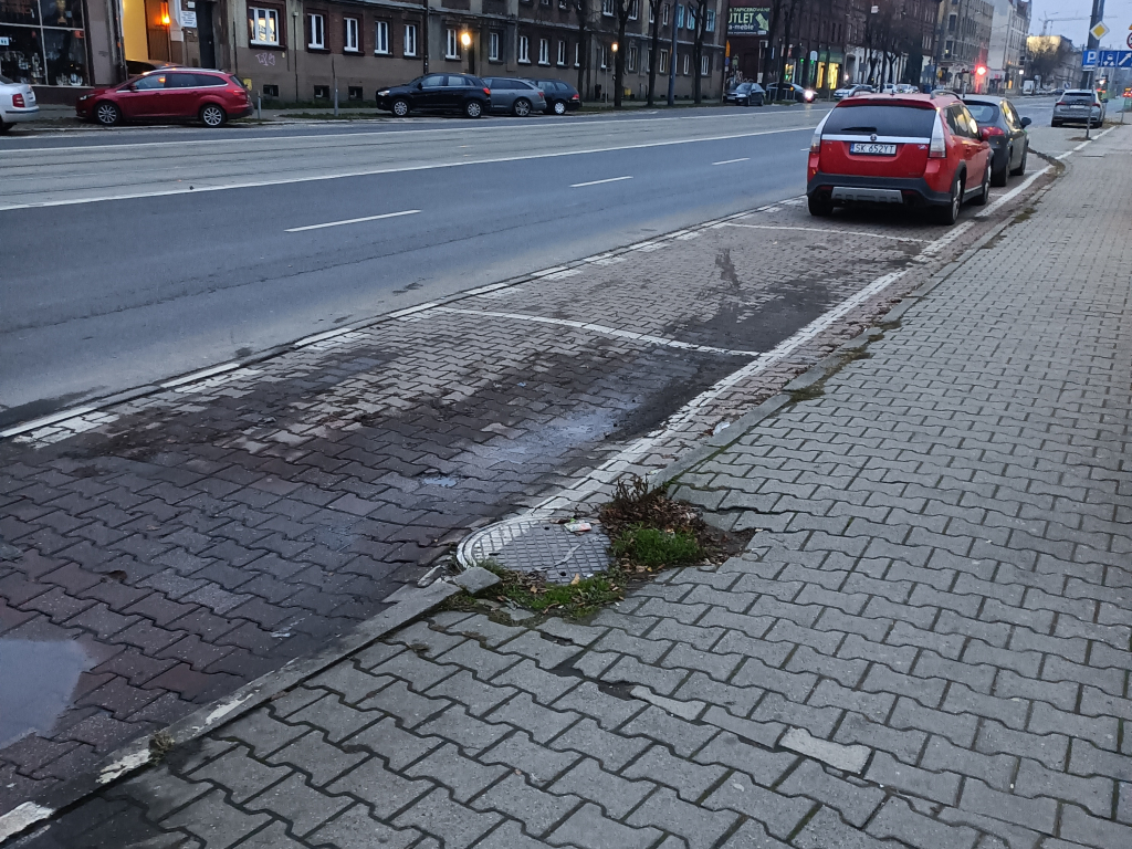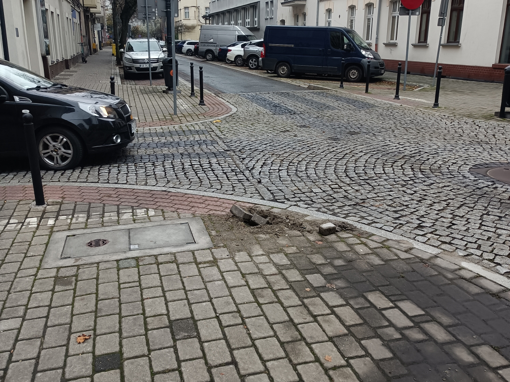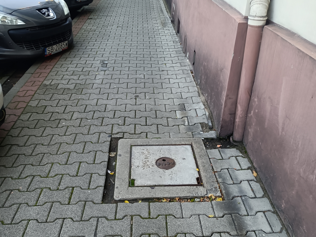 zatkana, uszkodzona studzienka uliczna